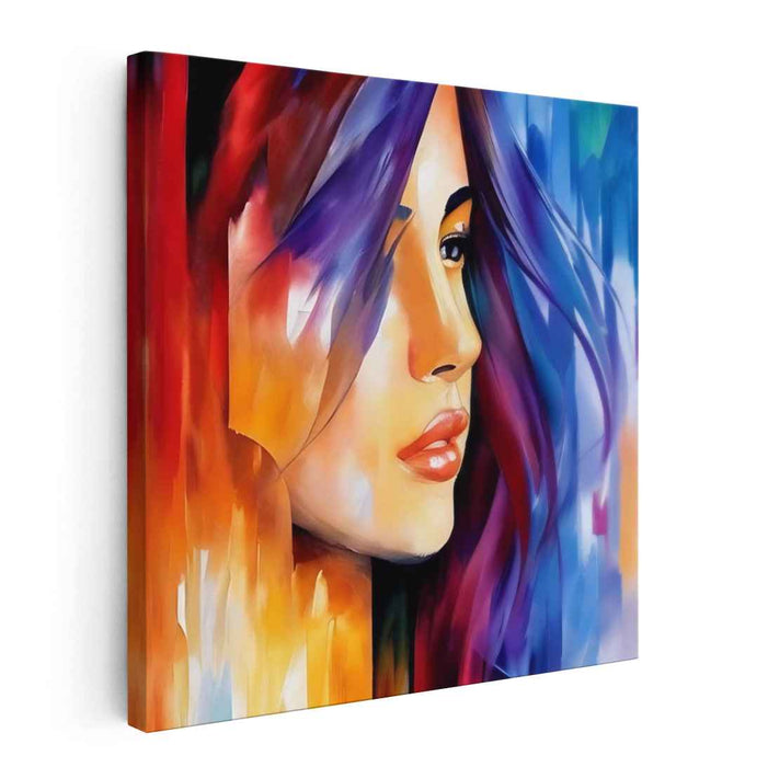 Introducing "Fusion of Emotions," a mesmerizing contemporary abstract portrait canvas art that captures the essence of passion, intensity, and contemplation in a vivid and dynamic style. This striking artwork presents a beautifully detailed portrait of a woman, her face exuding a serene and contemplative expression that invites viewers into a world of vibrant colors and bold strokes.