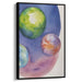 The largest sphere, positioned at the top, mesmerizes with vibrant green hues kissed by hints of yellow, reminiscent of a sunlit planetary body. In the middle, a blend of deep blues, purples, and a touch of orange creates a sense of depth and mystery, drawing the eye into the cosmic unknown. The smallest sphere, nestled at the bottom left, harmoniously combines soft blues and greens, inviting viewers to explore the tranquil beauty of a distant world.