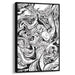 The black and white color scheme accentuates the stark contrasts and intricate details within the composition, adding depth and a sense of movement to the piece. The artist skillfully combines bold, sweeping strokes with delicate, detailed lines, creating a dynamic interplay between chaos and harmony on the canvas. This contrast allows the viewer to delve into the complexity of the forms and the interplay of light and shadow, evoking a sense of mystery and otherworldliness.