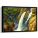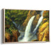 Immerse yourself in the serene beauty of 'Gilded Cascade Oasis: Lush Waterfall in Golden Wilderness,' a captivating canvas art that encapsulates the raw power and tranquility of a secluded waterfall. This breathtaking piece features a vibrant portrayal of water cascading down rugged, moss-covered rocks into a misty pool below.