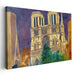 Introducing 'Gilded Sanctuary: Notre-Dame Cathedral in Golden Hue,' a mesmerizing cityscape canvas art that encapsulates the grandeur and architectural splendor of the iconic Notre-Dame Cathedral. This captivating artwork transports viewers to a twilight scene where the cathedral commands attention against a deep, dramatic sky, painted with a rich palette of purples and blues that beautifully contrast with the warm golden tones of the cathedral's facade.