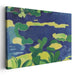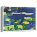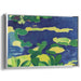 Step into the serene beauty of 'Glimmering Lily Reflections: Luminous Lily Pond Canvas Art,' a mesmerizing piece that beckons you to a tranquil lily pond where vibrant greens and luminous yellows dance against a deep blue canvas, creating an aura of calm and reflection. This artwork's design showcases abstract forms reminiscent of floating water lily leaves, with gentle yellow ripples hinting at light reflections on the water's surface.