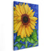 The mood of the artwork is cheerful and invigorating, making it an ideal addition to spaces that crave positive energy, such as living rooms, kitchens, or bedrooms. The deep cerulean background not only accentuates the sunflower's brilliance but also evokes clear summer skies, enhancing the overall uplifting ambiance of the piece.