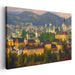 Introducing 'Golden Hour Elegance,' a mesmerizing canvas art print that transports viewers to a historical European city drenched in the soft, golden glow of a late afternoon, capturing the architectural splendor of classic European design. This artwork meticulously details a myriad of buildings, each showcasing unique facades, windows, and rooftops, set against a backdrop of rolling hills and a tranquil sky.