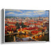 Introducing the mesmerizing "Golden Hues of Prague," a romantic European cityscape canvas art print that transports viewers to a historic European city, reminiscent of the enchanting streets of Prague. This artwork offers a panoramic view of terracotta rooftops, ancient bridges, and iconic Gothic architecture, all bathed in the warm, golden glow of either sunrise or sunset, exuding a sense of timeless beauty and tranquility.