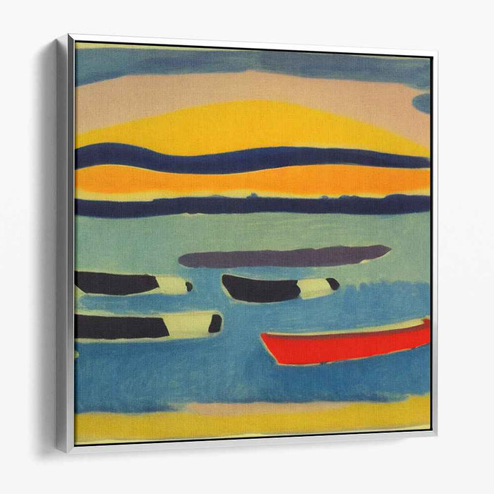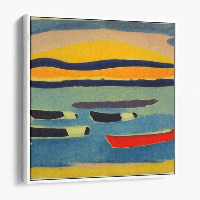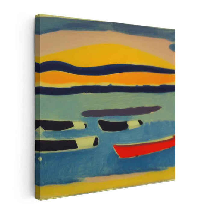 Introducing "Harbor Serenity: Vibrant Boats on Tranquil Waters," a mesmerizing canvas art print that captures a serene and abstract representation of boats peacefully floating on tranquil waters. This captivating artwork is a symphony of primary colors, with the bright yellows and deep blues of the sky and water creating a mesmerizing contrast.
