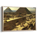 Introducing "Hieroglyphic Memories: A Glimpse into Ancient Egypt," a captivating historical landscape canvas art that immerses viewers in the grandeur of ancient Egypt, showcasing the iconic pyramids set against a vast, clear sky. The primary focus of this artwork is the awe-inspiring pyramids, meticulously depicted to highlight their monumental size and architectural brilliance.