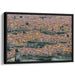 The predominant terracotta hue envelops the rooftops, infusing the scene with a rich, warm tone that unifies the cityscape. Complementing this primary color are subtle shades of yellow, green, and beige, adding depth and diversity to the composition. The artist's meticulous attention to detail brings each building to life, along with the meandering river that gracefully winds its way through the city.