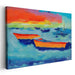 Horizon Meditation: Vivid Sunset and Serene Boats Canvas Art
