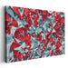 The deep crimson, the primary color of this artwork, exudes passion and vitality, while the cool turquoise undertones provide a striking contrast that injects depth and intricacy into the composition. This bold juxtaposition creates a dynamic interplay that captivates the viewer, drawing the eye into a whirlwind of geometric abstraction.