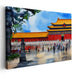 Introducing 'Ink Drenched Majesty: Watercolor Depiction of the Forbidden City,' a mesmerizing canvas art piece that transports viewers into the heart of traditional Chinese architecture, specifically highlighting the grandeur of the iconic Forbidden City. This artwork beautifully captures the essence of this historical monument, showcasing its vibrant red walls and golden rooftops set against a brilliant blue sky, creating a scene of immense beauty and cultural significance.