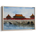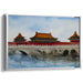 Introducing 'Ink of Ancient Wisdom,' a mesmerizing watercolor canvas art piece that encapsulates the grandeur and tranquility of traditional Chinese architecture. This artwork focuses on a serene scene featuring a classical palace structure with iconic orange-tiled roofs and striking red walls, set against a backdrop of a gracefully arched bridge over a calm water body.
