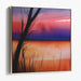 Introducing 'Ink Strokes Among Marshes: Watercolor Landscape with Silhouetted Reeds,' a mesmerizing canvas art that captures a serene sunset scene, enveloped in a symphony of warm, vibrant hues that transition from deep purples to fiery oranges and soft pinks. The horizon merges seamlessly with these captivating colors, crafting a tranquil yet lively panorama that soothes the soul.