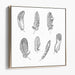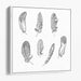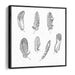 Introducing "Intricate Feather Studies: Black and White Nature Illustration," a captivating canvas art piece that intricately portrays the delicate beauty of seven distinct feathers in a meticulous black and white composition. Each feather is meticulously detailed, showcasing a play of light and shadow that accentuates the unique patterns and textures found in nature.