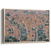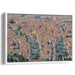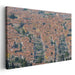 Introducing 'Legacy Over Cobblestones: Aerial View of Historic European Cityscape,' a mesmerizing canvas art that offers a bird's eye view of a bustling historic European city, showcasing a sea of terracotta rooftops that sprawl endlessly, creating a captivating mosaic of warm, earthy tones. The rooftops are punctuated by verdant trees and patches of greenery, providing a delightful contrast to the predominant reddish-brown palette.
