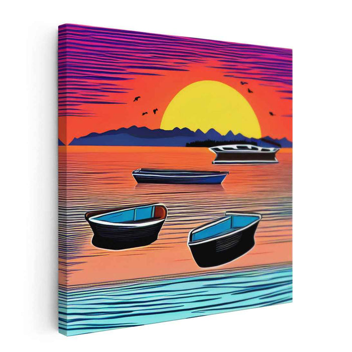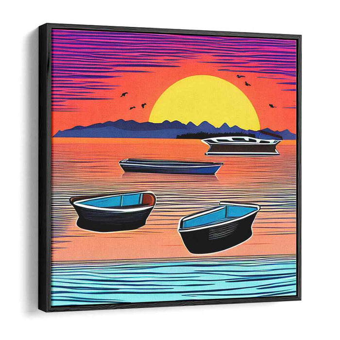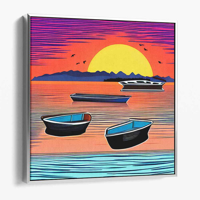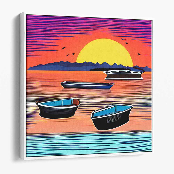 Decorate your walls with this high quality geometric Line Art Sunset Boats art print on canvas. Whether you hang it in your living room, bedroom or office, this artwork is sure to add a touch of beauty and color to your room.