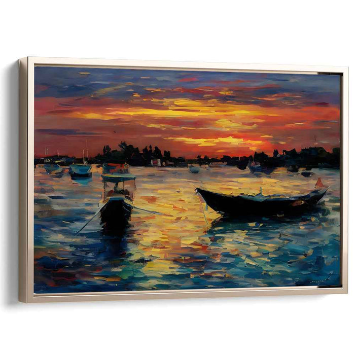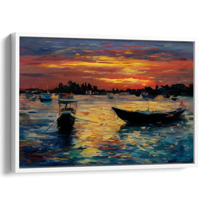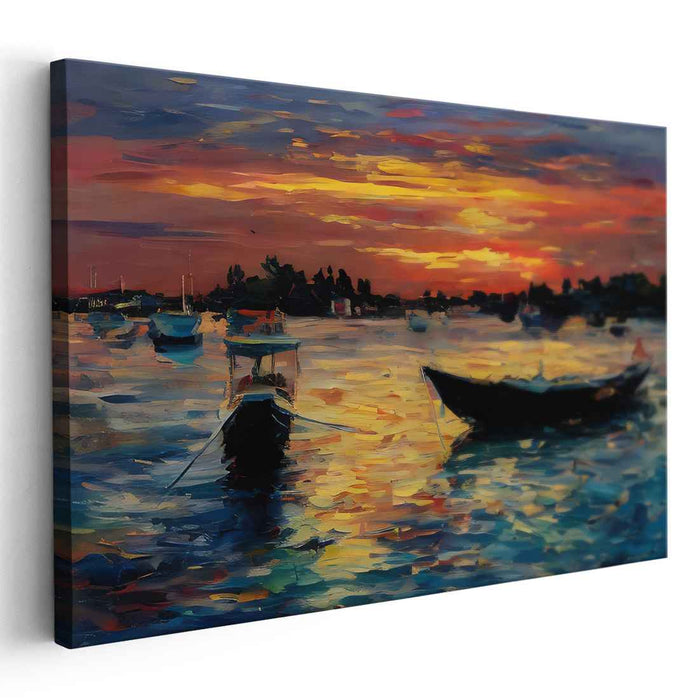 Decorate your walls with this high quality geometric Line Art Sunset Boats art print on canvas. Whether you hang it in your living room, bedroom or office, this artwork is sure to add a touch of beauty and color to your room.