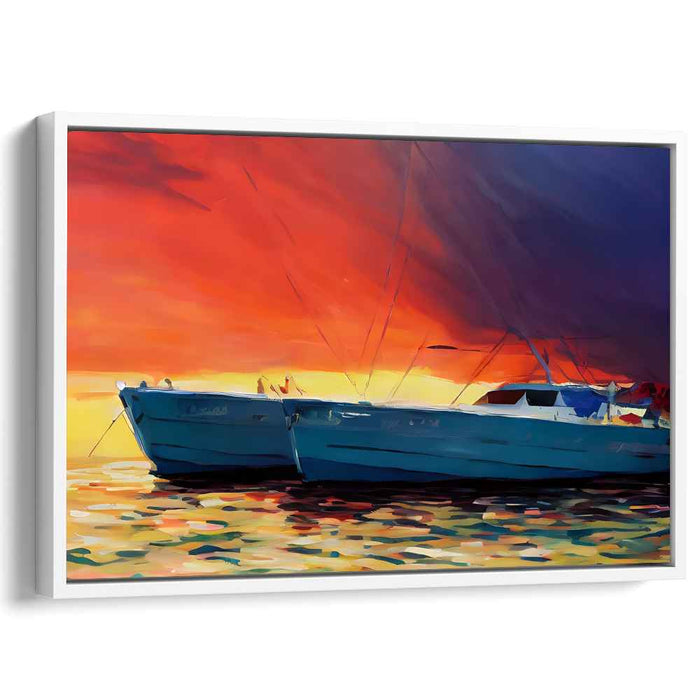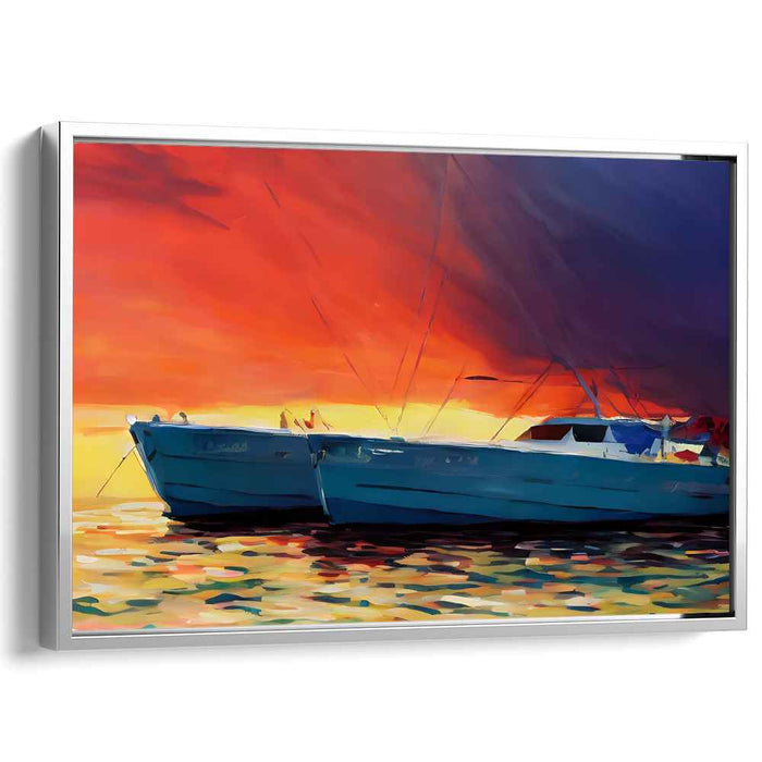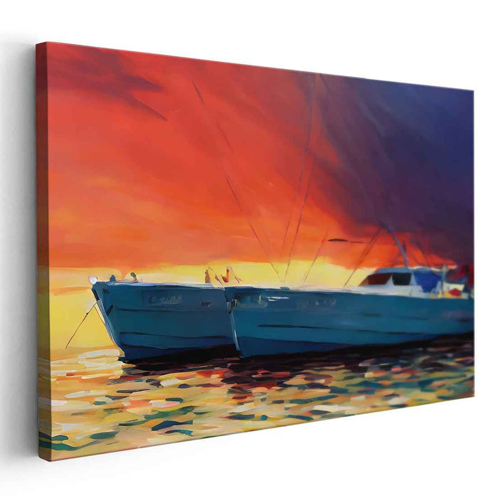 Decorate your walls with this high quality geometric Line Art Sunset Boats art print on canvas. Whether you hang it in your living room, bedroom or office, this artwork is sure to add a touch of beauty and color to your room.