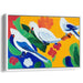 This piece is ideal for a living room or dining area, where its vibrant colors and lively subject matter can be fully appreciated. 'Lively Cockatoos' seamlessly blends modern art movements with nature-inspired themes, reminiscent of renowned artists like Henri Matisse and Georgia O'Keeffe.