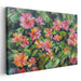 Introducing "Lush Garden Blooms," a mesmerizing impressionist floral canvas art print that transports viewers into a vibrant garden bursting with life and color. This captivating artwork showcases a profusion of zinnias, their petals a symphony of pink, red, and orange hues, set against a backdrop of lush green foliage that accentuates the blossoms' vivid beauty.