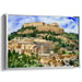 Introducing "Majestic Ancient Citadel: A Timeless Tribute to Classical Architecture," a mesmerizing landscape canvas art that transports viewers to a bygone era of grandeur and history. This captivating artwork beautifully depicts an ancient citadel, reminiscent of the iconic Acropolis of Athens, majestically perched on a hill against a lush, verdant backdrop.