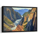 Introducing 'Majestic Heights Serenade: Serene River and Towering Cliffs,' a captivating landscape art print that immerses viewers in the breathtaking grandeur of a majestic canyon. This stunning artwork depicts a meandering river flowing amidst towering cliffs, creating a harmonious contrast between the rugged terrain and the tranquil waterway.