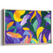 This artwork is a perfect fit for a contemporary living room or a vibrant bedroom, where its bold colors and dynamic composition can take center stage. The piece infuses any space with a sense of vibrancy, joy, and a touch of dreamlike elegance, making it an ideal choice for those seeking to add a pop of color and whimsy to their decor.