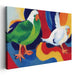 Introducing "Melodic Winged Symphony," a mesmerizing portrait canvas art print that captures the essence of vibrancy and joy through its depiction of two strikingly colorful birds set against a dynamic abstract backdrop. This artwork exudes a sense of liveliness and energy, perfect for infusing any space with a burst of color and vitality.