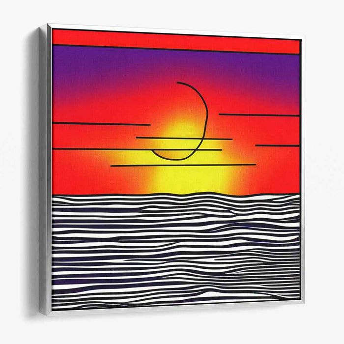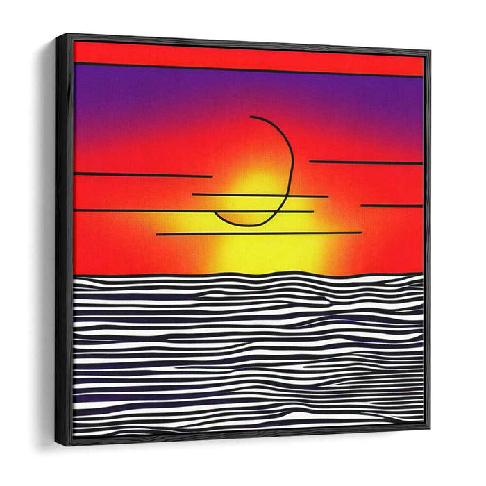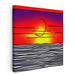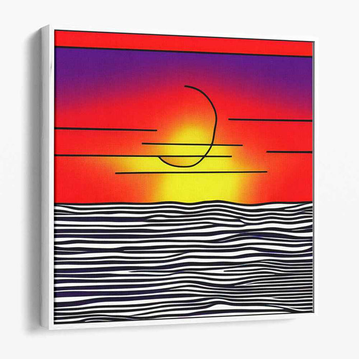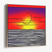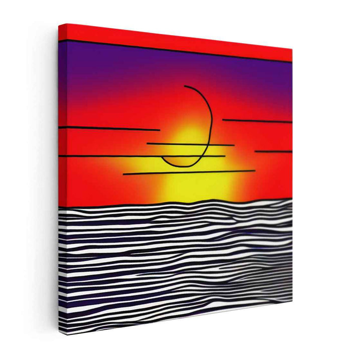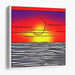 Introducing "Melting Dusk Horizon," a mesmerizing canvas art print that captures the enchanting beauty of a modern, abstract sunset over a tranquil ocean. This captivating artwork portrays a vibrant sunset scene dominated by the radiant hues of a setting sun, casting a gradient of fiery reds and purples across the sky as it sinks into the horizon.