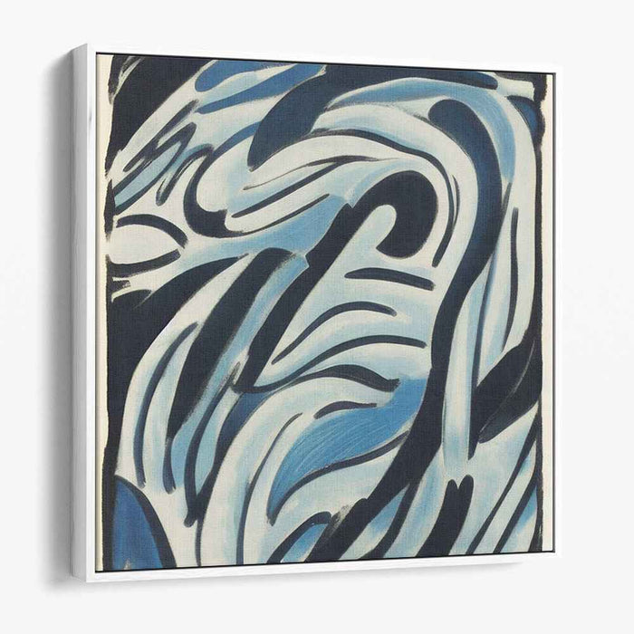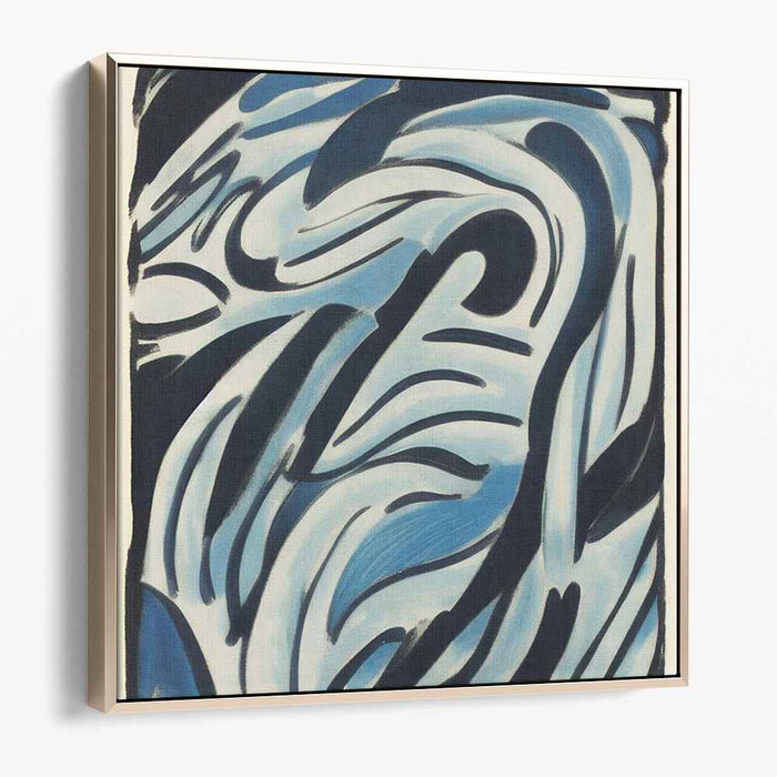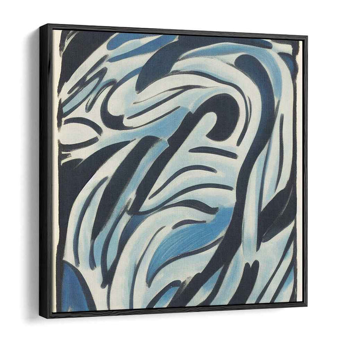 The artist's dynamic interplay of sweeping curves and bold strokes mirrors the fluidity of natural elements like water and wind. Shades of light and dark blue, intertwined with deep blacks, create a layered complexity that enriches the piece, drawing the viewer in with its visual allure and emotional resonance.