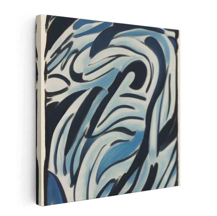 Introducing "Midnight Echoes in Blue," a mesmerizing dance of abstract forms and fluid lines captured in a captivating canvas art print. This artwork invites viewers into a world of soothing blues and blacks, creating a profound sense of depth and movement that mesmerizes the eye.