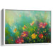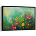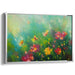 The artist's loose and expressive style, reminiscent of the Impressionist movement, allows the colors to seamlessly blend, creating a dreamlike and almost mystical ambiance. Each brushstroke seems to convey the gentle sway of the flowers in a breeze, infusing the scene with a sense of dynamic life and energy. The predominant hue of radiant green sets a lively and fresh tone, complemented by bursts of yellow, red, and delicate hints of blue in the background, evoking a feeling of serene vastness and expansiveness.