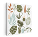 Introducing 'Minimalist Botanical Bliss,' a contemporary greenery canvas art print that celebrates the beauty of nature through a delightful collection of botanical illustrations. This captivating artwork showcases a harmonious palette of earthy greens, accented by subtle tones of brown, beige, and a muted blue, creating a serene and natural ambiance.