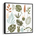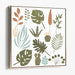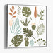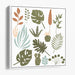 The artwork features a diverse array of plant species, from lush monstera leaves to delicate sprigs, meticulously rendered in a clean and minimalist style. Each plant is depicted with precision and elegance, exuding simplicity and sophistication. The use of a flat, vector-based technique emphasizes clean lines and shapes, enhancing the modern and fresh aesthetic of the piece.