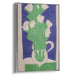 Introducing 'Minimalist Verdant Bouquet,' a captivating canvas art print that showcases a bouquet of white flowers elegantly arranged in a vibrant green vase, set against a deep blue backdrop. This striking composition marries simplicity with boldness, using primary colors to create a visually stunning piece that commands attention.