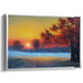 Introducing "Misty Horizons Glow," a captivating canvas art piece that transports you to a serene sunset over a mystical landscape, enveloping you in a warm and tranquil embrace. This breathtaking artwork showcases a vivid display of a fiery orange and red sun gracefully setting behind a cluster of majestic trees adorned with autumnal hues of red, orange, and hints of yellow.