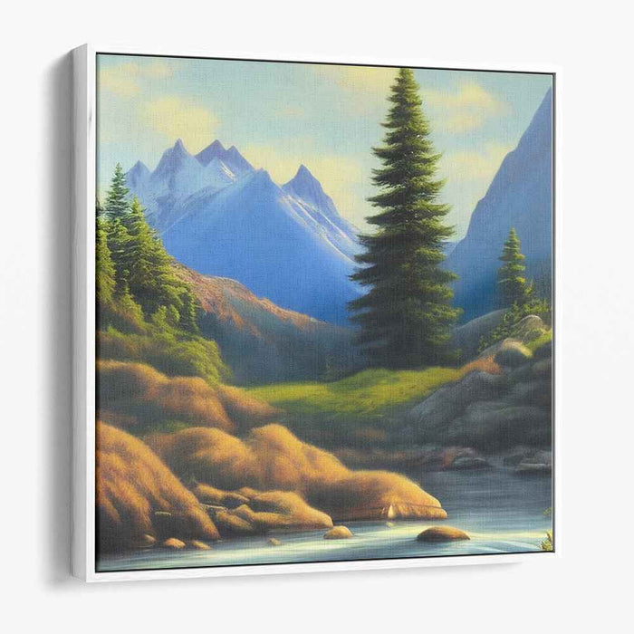 Elevate your space with 'Misty Peaks Serenade: Majestic Mountain and River Landscape Canvas Art,' a museum-quality piece that brings the serene beauty of nature into your surroundings. Let this captivating artwork inspire moments of calm reflection and infuse your decor with the peaceful essence of majestic mountains and flowing rivers.