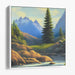 Step into the serene beauty of 'Misty Peaks Serenade: Majestic Mountain and River Landscape Canvas Art,' a captivating masterpiece that transports you to a tranquil natural oasis, where the majesty of mountains and the serenity of a flowing river converge. This exquisite artwork captures a breathtaking landscape dominated by towering mountains adorned with sharp, snow-capped peaks that pierce the clear blue sky, creating a sense of awe-inspiring grandeur.