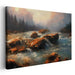 Immerse yourself in the tranquil beauty of "Misty River Serenity," a captivating landscape canvas art print that transports you to a misty river scene brimming with nature's tranquility and dynamic energy. This artwork depicts a robust river flowing through a rugged landscape adorned with large rocks, all harmoniously blended in a symphony of colors that evoke a lively and engaging visual experience.