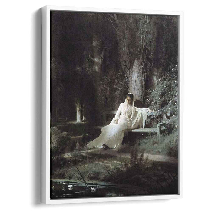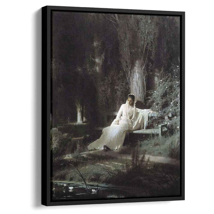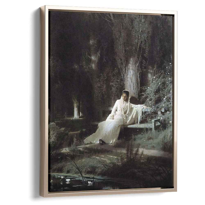 Step into the ethereal realm of Ivan Kramskoy's "Moonlit Night" (1880) – a captivating canvas that captures the essence of tranquility and nocturnal wonder. This masterpiece, now available in a high-quality reproduction, brings the stillness and serenity of a moonlit summer night into the heart of your home.