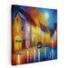 Moonlit Reflections: Vibrant Night Street Scene Canvas Art Print
