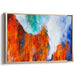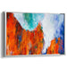 Introducing "Mountain Soliloquy," an electrifying abstract landscape canvas art print that pulsates with the energy of vibrant hues and bold brushstrokes. This captivating artwork invites viewers into a dynamic world of fiery oranges and reds, suggesting a mountainous terrain ablaze with color, harmoniously contrasted by cool blues and whites reminiscent of a sky or snow-capped peaks.