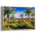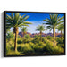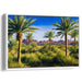 The artist's meticulous attention to detail is evident in the lifelike portrayal of the palm fronds and the textured brushwork that expertly conveys the roughness of the desert landscape. The realistic style employed in this artwork immerses viewers in a serene yet detailed depiction of nature's beauty.