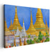 Introducing 'Mystic Echoes of Time,' a mesmerizing canvas art print that transports viewers to a bustling temple scene reminiscent of the iconic Shwedagon Pagoda in Myanmar. This artwork is a visual symphony of vibrant golden hues that dominate the canvas, capturing the sacred and awe-inspiring essence of the temple spires reaching towards the heavens.