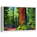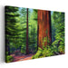 Introducing 'Nature's Genuine Embrace: Realistic Forest Landscape Canvas Art Print,' a mesmerizing artwork that transports viewers into the serene beauty of a dense forest, where towering redwood trees reign supreme. The focal point of this piece is a colossal redwood trunk, its deep reddish-brown bark starkly contrasting against the lush greenery enveloping it.