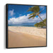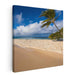 Introducing 'Ocean Foam Whispers: Serene Beachside Bliss,' a captivating canvas art print that whisks you away to a serene tropical paradise, where the beauty of a tranquil beach scene unfolds before your eyes. Immerse yourself in the vivid blue sky, adorned with fluffy white clouds that evoke a profound sense of calm and relaxation, setting the tone for a peaceful escape.
