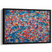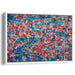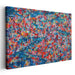 The primary color of this artwork is a deep, calming blue that serves as a backdrop for bold splashes of red, infusing warmth and intensity into the composition. Complementing these dominant hues are secondary colors like yellows, greens, and purples, adding layers of complexity and depth to the piece.