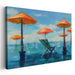 Orange Horizon Delight: Vibrant Beachscape with Orange Umbrellas Canvas Art