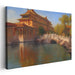 Immerse yourself in the mesmerizing world of "Pagoda Perspectives," a captivating canvas art print that transports you to the serene beauty of traditional Chinese architecture harmoniously set against a tranquil water scene. This exquisite artwork showcases an elegant palace with intricate rooflines and ornate details, a testament to the timeless craftsmanship of ancient builders.