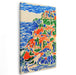The artist's impressionistic style shines through with bold, unblended hues and dynamic brushwork that infuse the piece with energy and movement. The primary colors of striking blue and rich green dominate the composition, complemented by accents of warm orange and soft beige, creating a harmonious yet lively visual feast for the eyes.